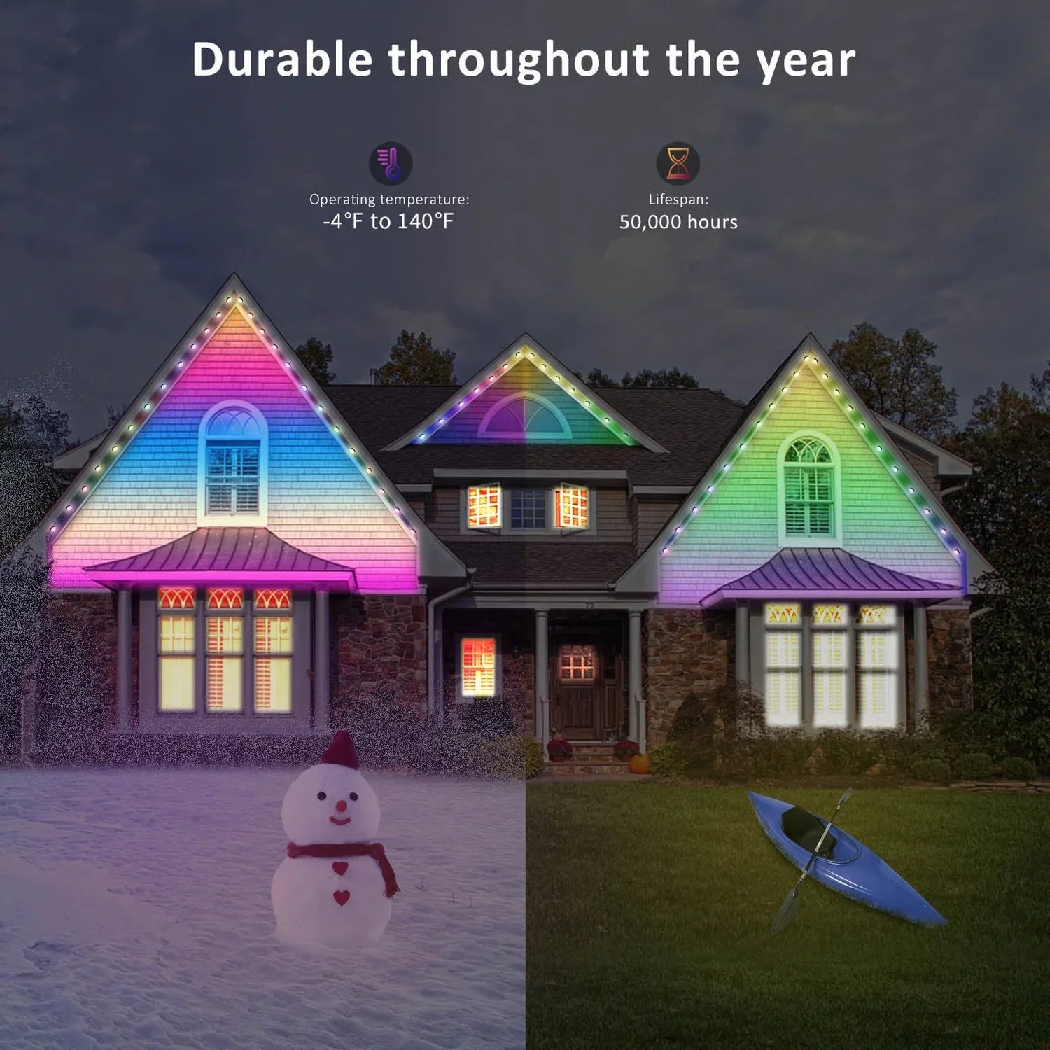 Easily customize colors and brightness to match your mood, holiday, or special occasion through the mobile app. Built to withstand harsh weather conditions, these lights are water-resistant and durable for long-term, safe outdoor use. Perfect for gardens, balconies, or patios, they create the ultimate outdoor ambiance and comfort.